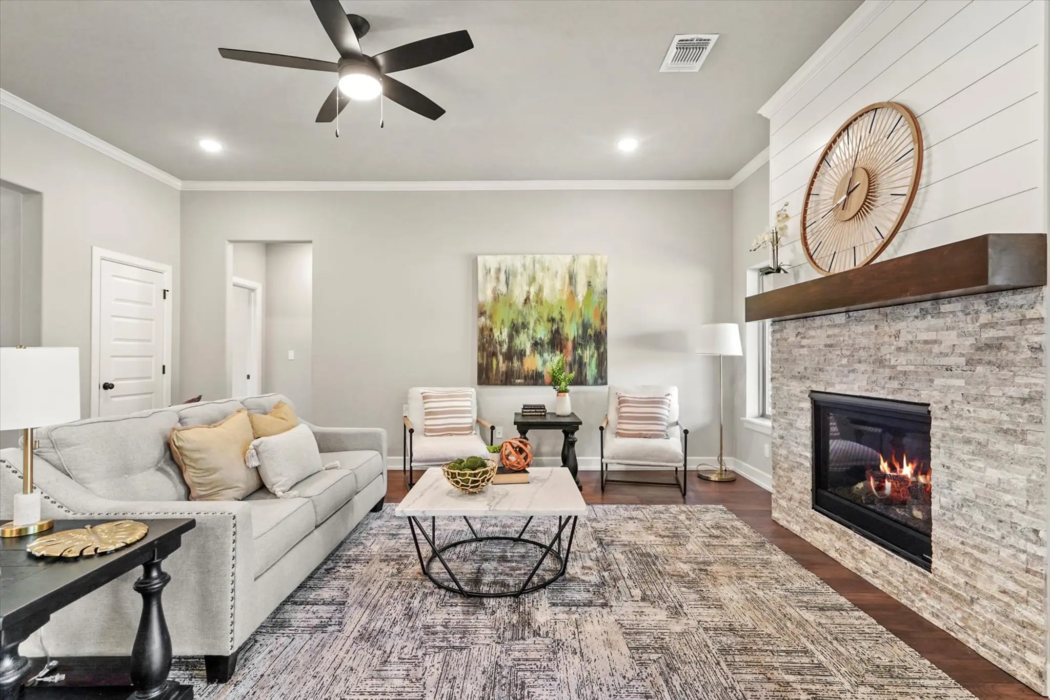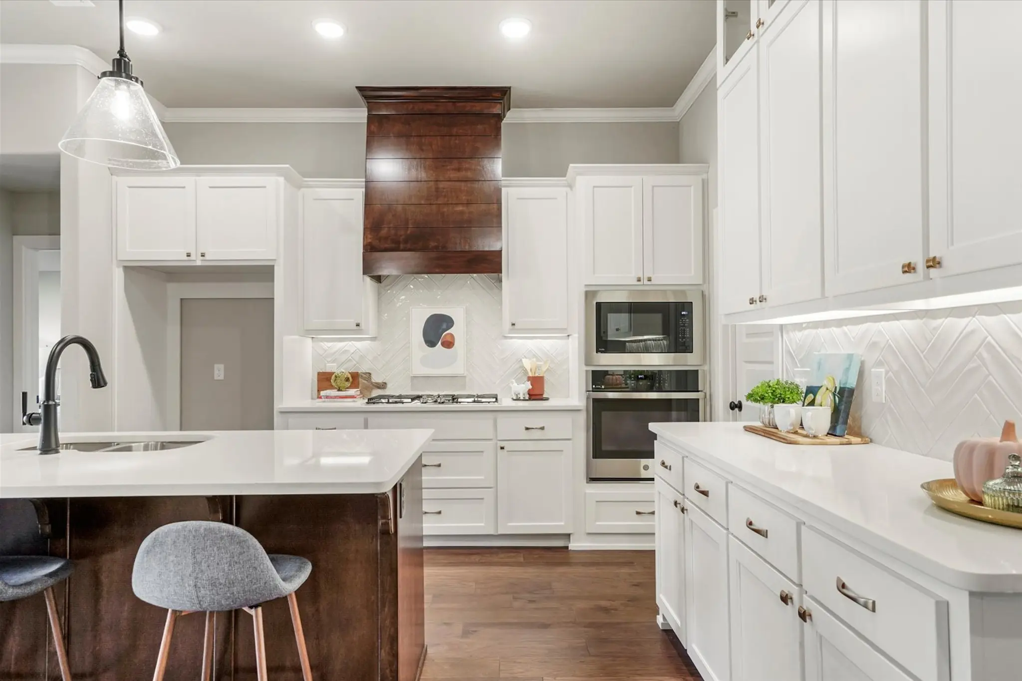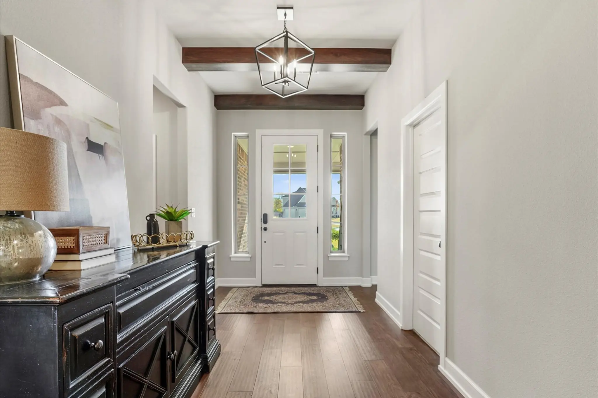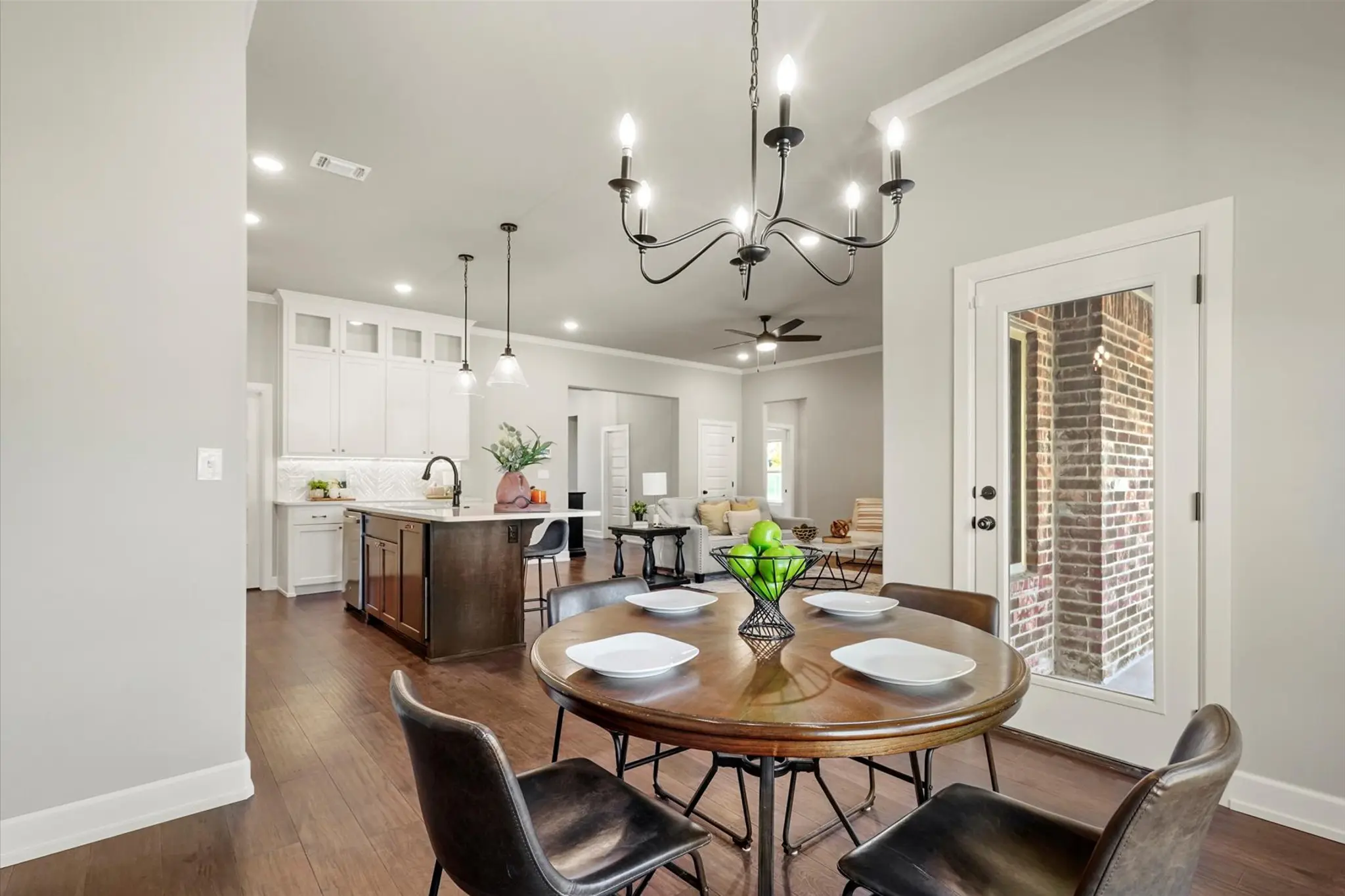 Fall in love at first sight with this beautifully crafted home in Creekside at Forest Ridge, where timeless curb appeal meets modern comfort. From the charming brick, stone, and wood-accented exterior to the warm, wood-beamed entryway, every detail invites you in. Inside, the open-concept layout features a spacious living room with a cozy gas fireplace, a designer kitchen with a large island and walk-in pantry, and a dining area perfect for gatherings. The private owner’s suite offers a spa-like escape with dual vanities, a soaking tub, glass shower, and a walk-in closet with direct access to the laundry room. With four bedrooms—including a versatile front room ideal for a guest suite or home office—and a covered patio out back, the Hawkins Pt is designed for how you live today.