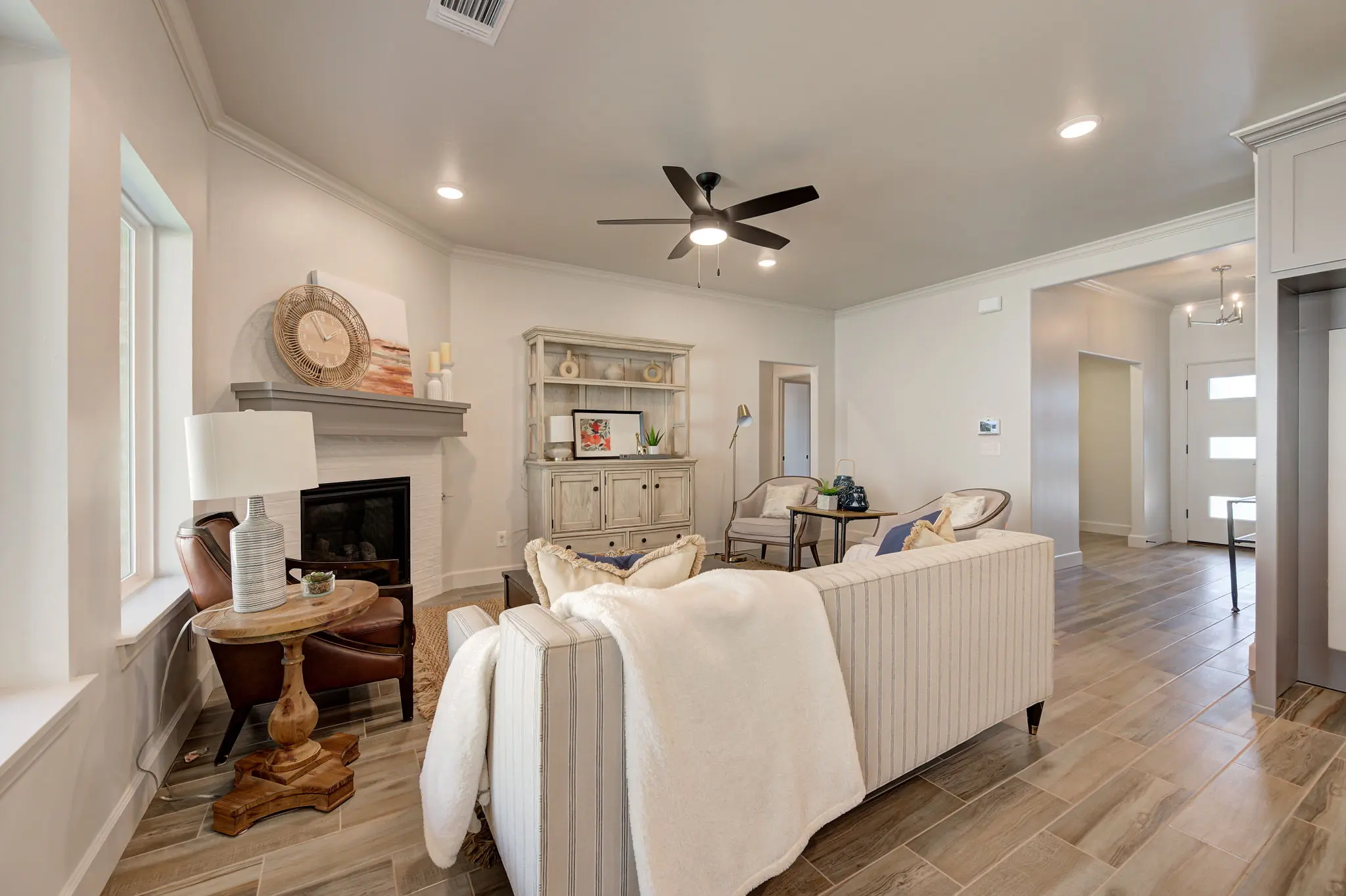 The Rockland at Covell Valley blends sleek modern design with warm, livable charm. Step inside to an inviting open-concept kitchen and living area, complete with a cozy gas fireplace, oversized island, and walk-in pantry—perfect for everyday living or entertaining guests. The private primary suite, tucked at the back of the home, offers a serene escape with a spa-like bath and a spacious walk-in closet that connects directly to the laundry room for added convenience. Two additional bedrooms are located at the front and share a full bath, while a versatile flex room off the entry makes an ideal office, or creative space. Set on a 0.15-acre lot, this home comes loaded with thoughtful features: a full sprinkler system, tankless water heater, smart home tech, healthy air filtration system, and a storm shelter. As a certified Zero Energy Ready Home, it goes beyond typical energy-efficient standards with innovations like 2"x6" walls, spray foam insulation, ENERGY STAR® appliances, high-performance windows, a moisture barrier, and a perfectly sized HVAC system—all designed to maximize comfort and savings. Located in the highly desirable Covell Valley community, just minutes from I-35 and within the top-rated Edmond School District, The Rockland offers exceptional living in a prime location.