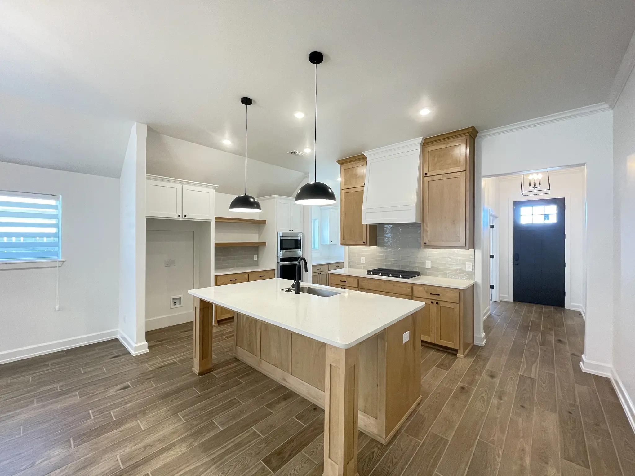 Step into a home that’s not just move-in ready, but ready to elevate the way you live. Thoughtfully designed with modern finishes, smart upgrades, and generous space, this home blends style and functionality effortlessly. Right off the entry, a light-filled flex room gives you the freedom to create the perfect home office, playroom, or cozy reading retreat. The heart of the home is the open-concept kitchen and living area—made for gathering, and hosting. The kitchen offers floating shelves for curated displays, an oversized island for cooking and baking, a true messy kitchen to keep counters clutter-free, and storage that makes staying organized easy. The living room’s warm wood floors, tiled gas fireplace, and already-installed blinds bring instant comfort to the space. When you're ready to unwind, the owner’s suite becomes your private retreat with dual vanities, a 6ft soaking tub, a spacious walk-in shower, and a massive closet. Three additional bedrooms—each with large closets—offer flexibility for guests, or growing families. Off the garage entry, the built-in mud bench keeps daily life tidy, while the garage itself is ready for your home gym, complete with an EV charger, storm shelter, and tankless water heater. This home doesn’t just look beautiful, it’s built for high performance and energy efficiency, helping you live comfortably and sustainably year-round. Outside, a fully fenced backyard with mature trees, fresh landscaping, and a covered patio gives you a peaceful place to grill, play, or simply relax as the day winds down.